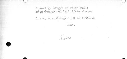 //// . . //// I ensliga stugan en bilen kväll //// .steg Gunnar med bark ifrån skogen //// HHw^T!'' * //// 1 str. mus. &vergaard Ulma 11642:25 //// UU< A. //// J ^^ ////