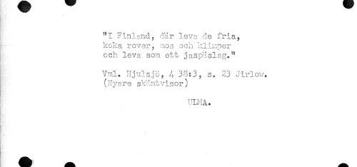 //// Finland, där leva de fria, //// koka rover, mos och kllnper //// och leva som ett jaspäslag.^ //// ! //// Vml. Hjulsjö, A 38:3, s. 23 Jirlow. //// (Nyare skämtvisor) //// ! UU-IA. //// ! //// i! //// t', //// t, //// ( //// p * ////