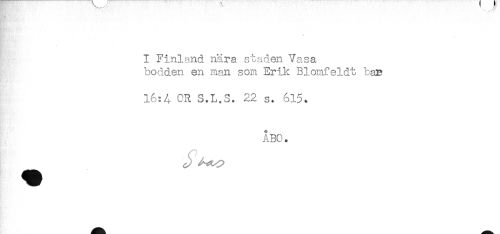 //// I Finland nära staden Vasa //// bodden en man som Erik Biomfeldt taB //// 16:4 OR S.L.S. 22 s. 61$. //// ÅBO. ////