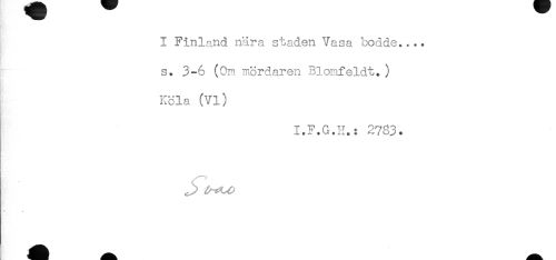 //// I Finland nära staden Vasa bodde.... //// s. 3-6 (Om mordaren Blomfeldt.) //// Kola (VI) //// I.F.G.H.: 2783. ////