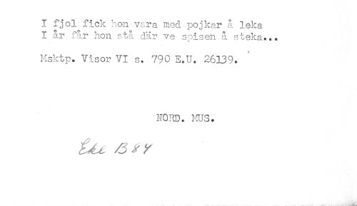 //// I fjol fick " on vara med pojkar å leka //// I år får hon stå där ve spisen å steka... //// Ksktp. Visor VI s. 790 E.U. 26139. //// NORD. MUS. //// ^ , ^ ////