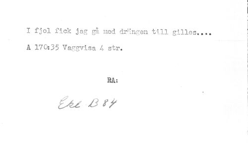 //// ! //// < //// I fjol fick jag gå med drängen till gilles.... //// A 170:35 Vaggvisa A str. //// ! //// < //// < //// RA: //// i //// + j ////
