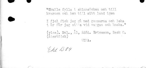 //// ^Skulle fylla i skinnsäcken ock till //// v' //// kvarnen ock ken till sitt land igen //// ^^ I fjol fick jag gå ned gossarna ock leka //// i år får jag sitta vid vaggan ock kneka. //// ^ o //// (visa). Dal. , Al, 24.64. Ericsson, Back 0. //// i (Återblick) //// a ULHA. //// } ^. ////