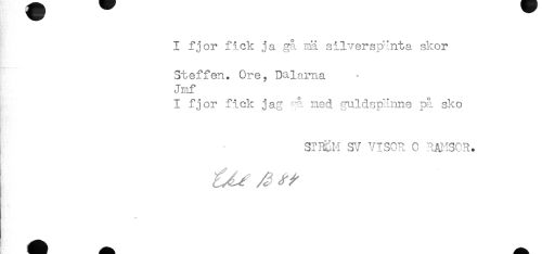 //// I fjor fick ja. gå raä silverspinta skor //// Steffen. Ore, Dalarna //// Jmf //// I fjor fick jag gå ned guldspänne på sko //// S?r&.H yj VISOR C RAHSCR. ////