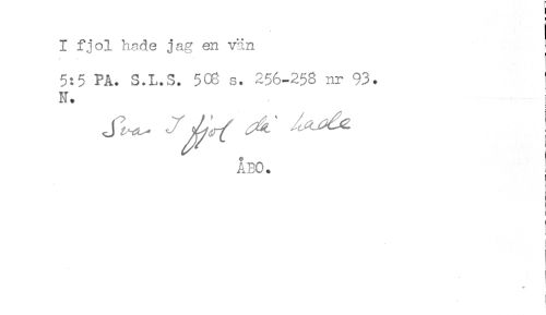//// I fjol hade jag en vän //// 5:5 PA. S.L.S. 508 s. 256-258 nr 93. ] //// N. i //// ÅBO. ^ //// i //// j //// - ////