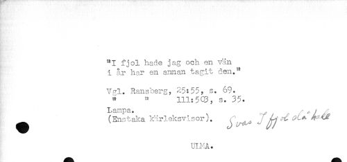 //// "1 fjol hade jag och en vän //// i år har en annan tagit den.-*' //// . //// V^i. Ransberg, 25:55, s. 69. //// " " 111:503, s. 35. //// ^ (Enstaka k-irleksvisor). ^ ^ ^ //// UIHA. ////