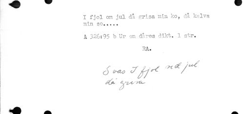 //// I fjol om jul då prisa min ko, då kalva //// min so*.... //// A 326:95 b Ur en dÅres dikt. 1 str. //// RA. //// O' ^ ^ ^ ^ ^ / //// i ^^^^^^^ ////