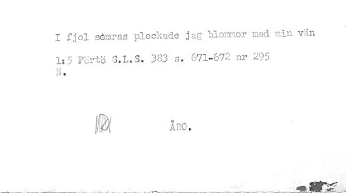 //// I fjol s&aras plock^de jag blommor med min vän //// 1:5 Pcrtö S.L.S. 383 s. 671-672 nr 295 //// N. //// ÅBO. ////
