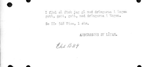 //// I fjol så fick jag gå nod drängarna i ängen //// gott, gott, gott, ned drängarna i ängen. //// Se II: 543 Visa, 1 str. //// ANDERSSONS SV IÅTAR. ////