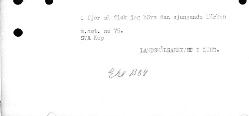//// I I fjor sa fick jag höra den sjungande lärkan //// j ^^ ra.not. no 75. //// ; ^ yJA Kop //// \ //// f ^ //// t ////