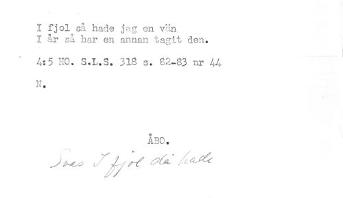 //// I fjol sa hade jag en vän //// I år så har en annan tagit den. //// ' !* //// A: 5 HO. S.L.S. 318 s. 82-83 nr //// N. //// ÅBO. ////