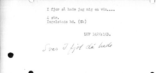 //// I fjor sa hade jag nig en vän.... //// A str. //// Ins-elstads hd. (Sk) //// LUF 3^20:1(3. ////
