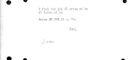//// I fjol vid jul då grisa mi ko //// då kalva mi ko //// Ramsa EC INE 33 s. 55. //// !' ÅBO. //// ^ * ////