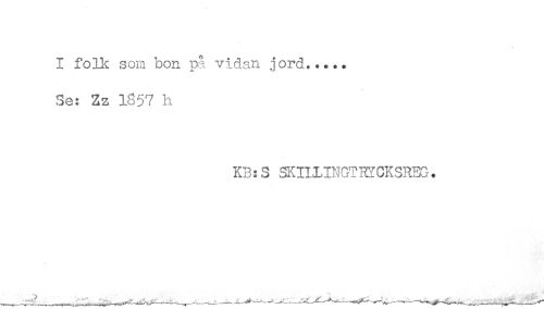 //// I folk som bon på vidan jord..... //// Se: Zz 1857 h //// KB: S SKIIHNGT HYCKSREG. ////