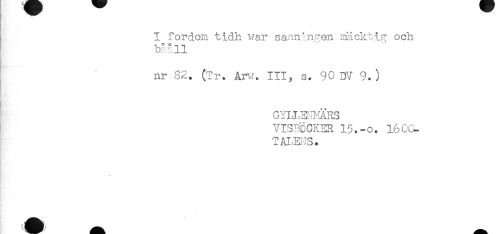 //// 1 fordom tidh war sanningen mäcktig och //// ! bååll //// Ztit? //// B fy ^, //// ar'* //// nr 62. (Tr. Änr. III, s. 90 DV 9.) //// GYLLENMARS //// VIS^CKER 15.-0. 16 GC- //// TALENS. //// ) ////