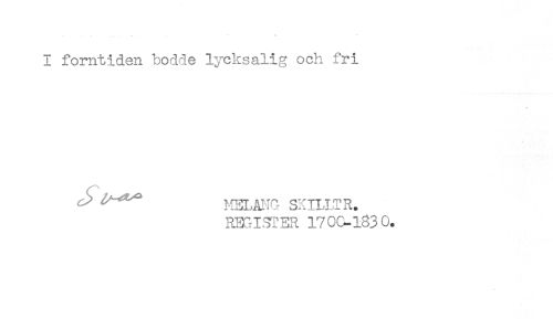 //// I forntiden bodde lycksalig och fri //// * //// inn-Åir. sxiLLTR. //// RBGIJfER 17 0&-1830. ////