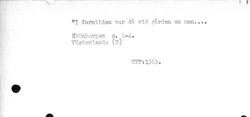 //// ' M-'' - < < ' ' ' ' . . //// forntiden var då vid gården en man.... //// - //// Skönkarpan s. 1-4* //// Västerlanda (B) //// r,- //// . //// VFF:1363. //// * ////