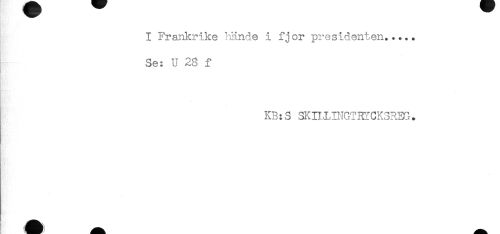 //// I Frankrike hände i fjor presidenten..... //// Se: U 28 f //// t: //// . //// KB: S SKn,LINGTH?CKSREG. ////
