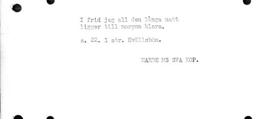 //// I frid jag all den långa natt //// ligger till morgon klara. //// . //// s. 22. 1 str. Kvällsbon. //// HAR3E MS SVA KOP. //// . ////