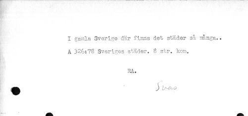 //// I gamla Sverige där finns det städer så många.* //// Ä 326:78 Sveriges städer. 8 str. kom. //// RA. ////