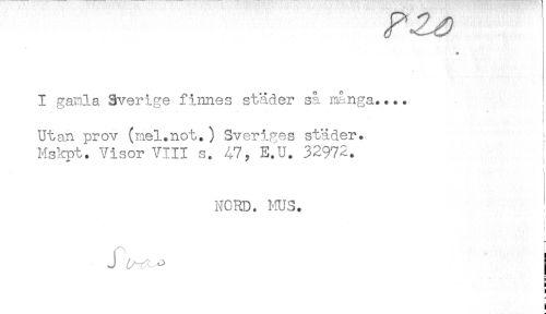 //// I gamla Sverige finnes städer så många.... //// , . ... * ! //// Utan prov (mel.not.) Sveriges städer. //// Msknt. Visor VIII s. 47? E.U. 32972. //// NCHD. MUS. //// r I //// J ^ //// ! ////