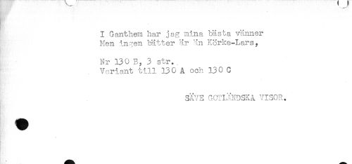 //// I Ganthem har jag mina bästa vänner //// Men inien bätter är än Kcrke-Lars, //// Nr 130 B, 3 str. //// Variant till 130 A och 130 C //// * //// SÄ7E GOfMNDSKA VISOR. ////