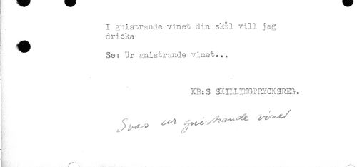 //// i //// ) //// I gnistrande vinet din skål vi. 11 jag //// dricka //// T //// Se: Ur gnistrande vinet... //// i //// < //// < //// KB:S SKILHI-IGTRYCKSREG. //// ^ ^ ^ ////