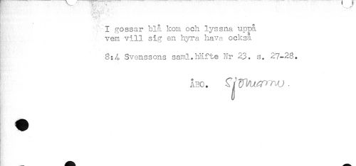 //// R - //// I gossar blå kom och lyssna uppå //// vem vill sig en hyra hava, också //// * //// < //// 8:4 Svenssons saml.häfte Nr 23. s. 27-28. //// . //// ÅBO. //// c ////