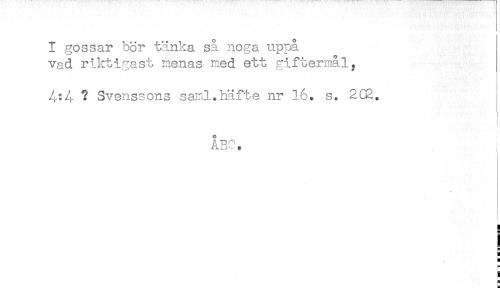 //// I gossar bör tänka så noga uppå //// vad riktigast menas med ett giftermål. //// 4 ? Svenssons saml.häfte nr 16. s. 2C2. //// < //// ÅBO. //// ! //// i //// ) //// i //// * ////