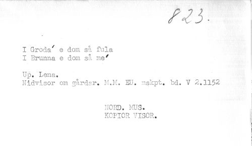 //// I Groda' e dom så fula. //// I Brunna e dom så me' //// Up. Lena. //// Nidvisor om gårdar. H.H. EU. mskpt. bd. V 2.1152 ! //// NORD. f^S. //// KOPIOR VISOR. //// ) //// t //// ! //// i //// i //// ! ////