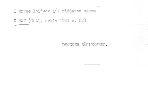 //// I gryne loifwor :/: riddaren sagura } //// i //// D 327 (Gotl. arkiv 1931 s. 68) //// ' //// t //// DENCKER SÅGLEKSREG. ////
