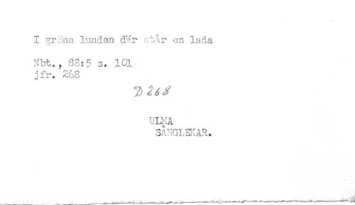 //// I arena lunden där står en lada //// Nbt., 88:5 s. 101 //// jfr. 268 //// ULMA //// SÅNGLEKAR. ////