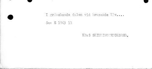 //// ^^ I grönskande dalen vid brusande älv.... //// Se: E 1903 11 //// KB:S SKIUJNGTRICKSREG. //// . ////