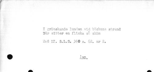 //// i //// I grönskande lunden vid bäckens strand //// Där sitter en flicka så skön //// 2:8 LT. S.L.S. 360 s. 62. nr 2. ////