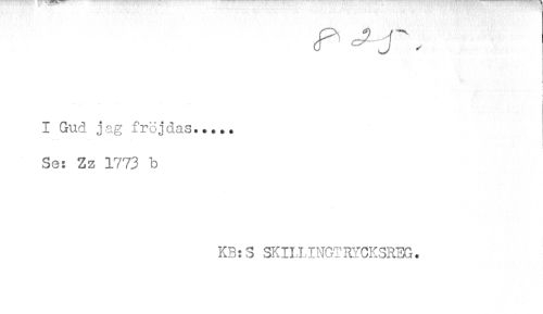//// ! //// I Gud jag fröjdas..... //// Se: Zz 1773 b //// KB:S SKULINGTRYCKSREG. ////