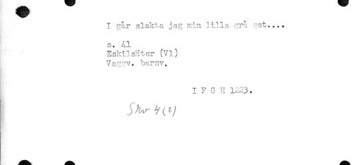 //// I går slakta jag min lilla grå get.... //// s. 41 //// Eskilsäter (Vi) //// Vagfrv. barnv. //// I F G H 1223. //// j ' ^ ^ ( ^ ////