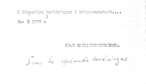 //// I GSssekärs bevadringar i krigaregestalt.... //// , * //// 3 //// Se: E 1S97 e //// < //// KB:S SKII.UNGTRYCKSREG. //// i //// i ////