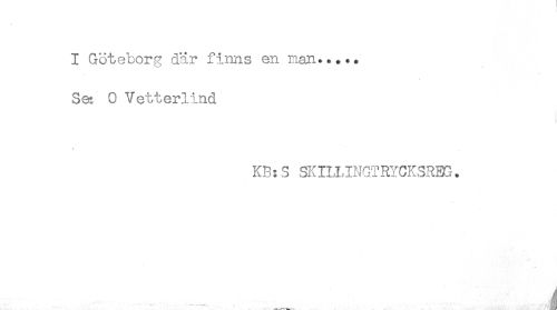 //// I Göteborg dar finns en man..... //// Set C Vetterlind //// KB: S SK ILI, INGT RYCKSRBG. ////