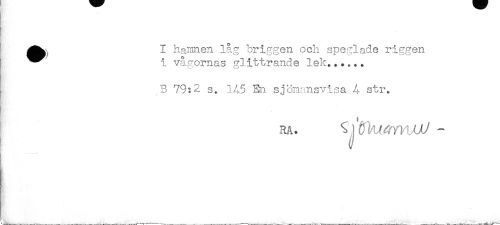 //// - //// ^^ I ha^Tnen låg briggen och speglade riggen //// ^^ i vågornas glittrande lek...... //// B 79:2 s. 145 En sjomansvisa 4 str. //// t //// ^ RA. - //// H&A ..-.<...! .. * //// ___ ___ ______ _ _ ////