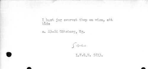 //// I hast jag svarvat ihop en visa, att //// både //// s. 23-2A Göteborg, *Vg. //// J //// I.F.G.H. 5813. ////