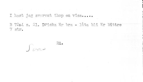 //// I hast jag svarvat ihop en visa..... //// B 72:4 s. 21. Dricka är bra - låta bli är bättre //// 7 str. ! //// s //// - //// i //// i //// RA* i //// J ^^ //// i //// ! //// i //// j //// ! ////
