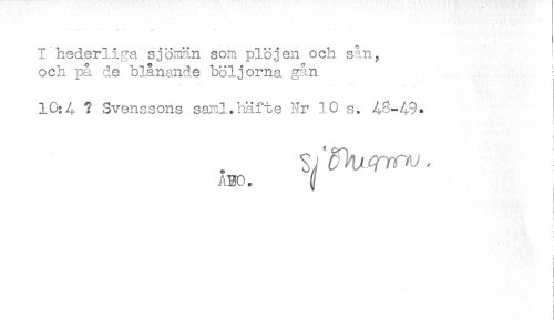 //// I hederliga sjömän som plöj en och sån, //// och på de blånande böljorna gån //// 10:4 ? Svenssons saml.häfte Nr 10 s. 48-49* //// ! //// i //// ! //// t //// ABC. ^ //// i //// i //// i //// i ////