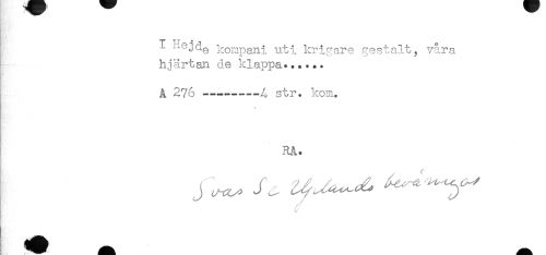 //// I --Jd^ kompani uti krigare gestalt, våra //// hjärtan de klappa...... //// & 276 ---4 str. kom. //// RA. ////