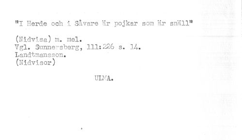 //// - . i //// { //// '*! Herde och i Såvare är pojkar som är snäll** //// (Nidvisa) m. mel. //// Ygl. Sunne^sberg, 111:226 s. 14. //// Landtmansson. //// (Nidvisor) //// un^Å. ////