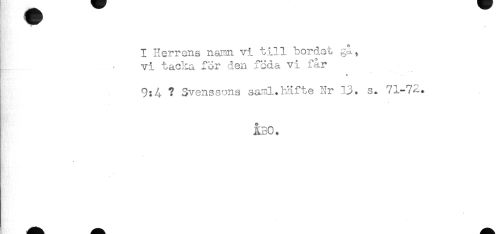 //// M . ^ //// I Herrens namn vi till bordet //// vi tacka för den föda vi får //// * //// 9:4 ? Svenssons saml.häfte Nr 13. s* 71-72. //// ÅBO. ////