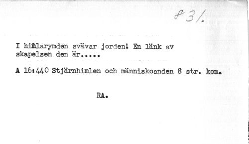 //// I hi&larymden svävar jorden^ En länk av //// skapelsen den är..... //// A 16:440 Stjärnhimlen och iaänniskoaRden 8 str. kom. //// i //// t //// t //// t //// RA. //// * //// g //// * //// ! //// ! //// ) //// i //// ! ////