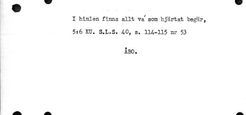 //// I himlen finns allt va' som hjärtat begär, //// ^ **** * -- r //// 5:6 KU. S.L.S. AO, s. 11A-115 nr 53 //// ÅBO. ////