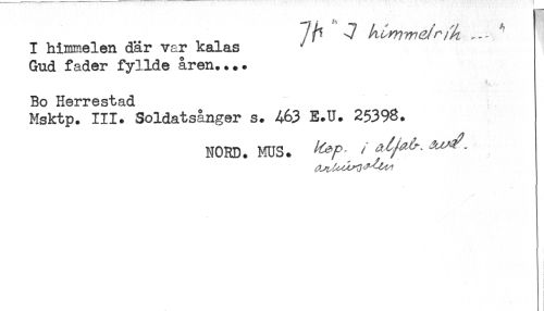 //// I hinxaelen där var kalas ^ //// Gud fader fyllde åren.... //// Bo Herrestad //// Msktp. III. Soldatsånger s. 463 E.U. 25398. //// NORD. MUS. ^ ^^ ^^ ////