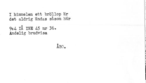 //// I himmelen ett bröllop är //// det aldrig ändas såsom här //// 9:4 IÅ INE 45 nr 36. //// Andelig brudvisa //// - //// t- //// ! //// ÅBO. //// 1 //// [ ////