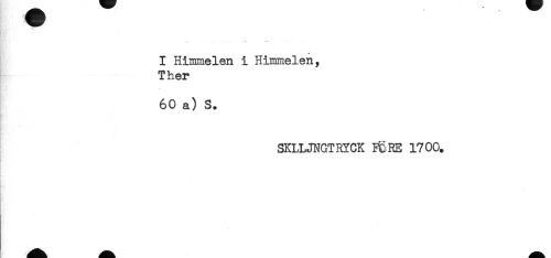 //// I Himmelen i Himmelen, //// Tker //// 60 a) S. //// SKLLJNGTRYCK K RE 1700. //// . ////